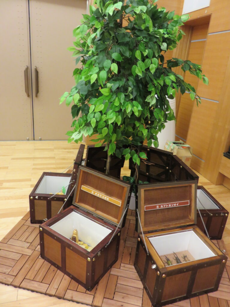 コビトの生態を表したミニジオラマが入った宝箱を7種類展示します。フタを開けて、こっそり見てみよう。どんなコビトがいるかな?