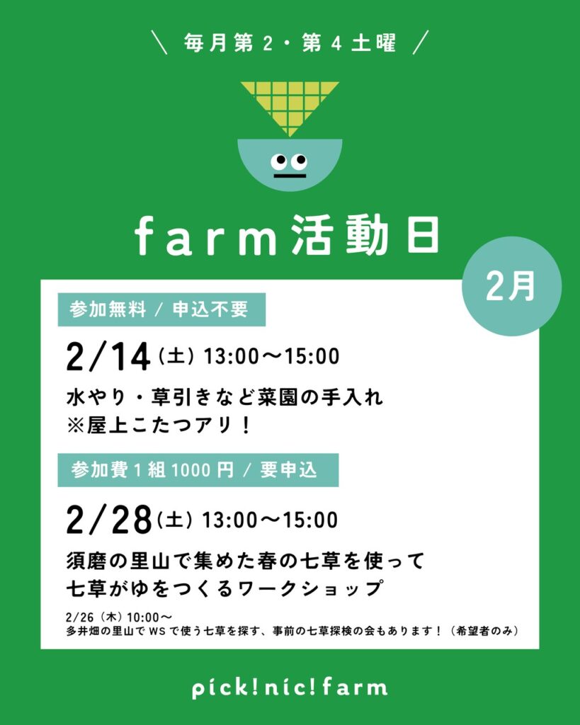 🌱2/14(土)13:00〜15:00 farm活動