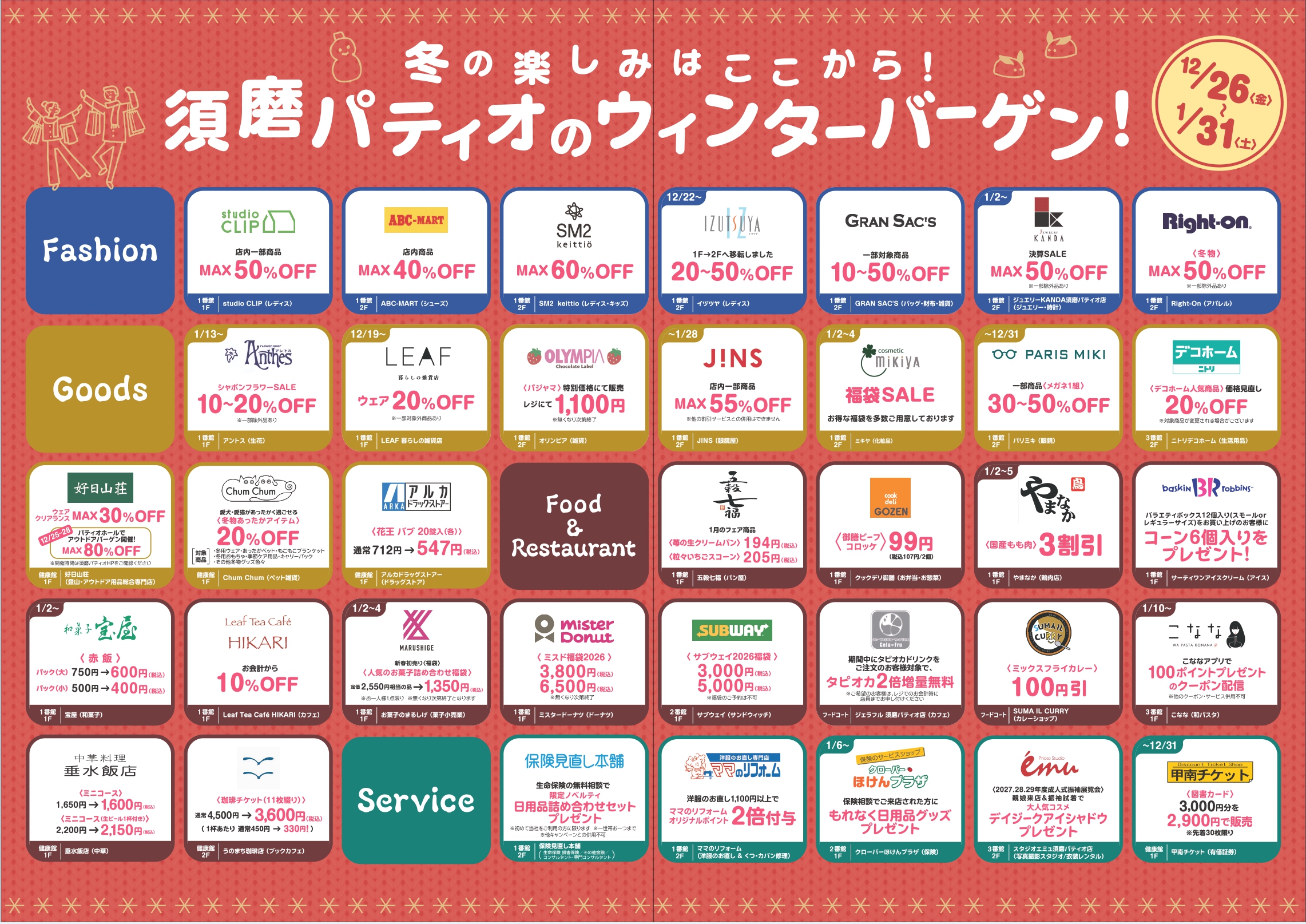 12月26日(金)~1月31日(土)まで対象店舗でお得なアイテムが勢ぞろい!
